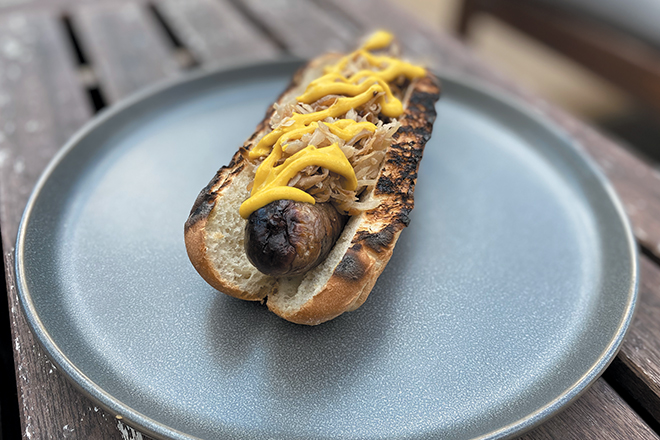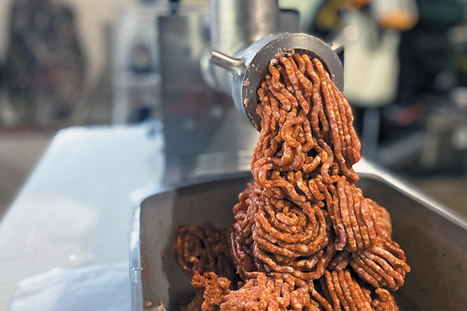 Soak hog casings in warm water to remove the heavy salt flavor. Load up the grinder’s stuffer attachment or your sausage stuffer and fill to the size that you prefer. Make sure to twist off each sausage end as you go. It’s helpful to let the sausages sit overnight in the refrigerator to dry out. The casings will have more pop to them, and the links will hold tight when you separate them before grilling.