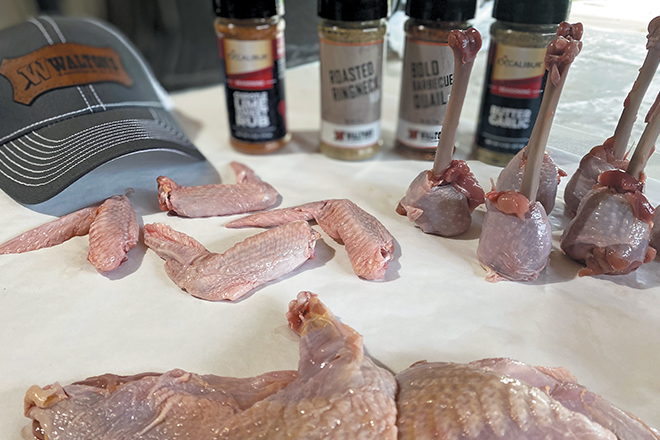 When it comes to seasonings themselves, the sky is the limit, so it’s important to experiment and have fun. Try different pre-mixes like Walton’s Roasted Ringneck and Bold Barbequed Quail Rubs, or raid the pantry and come up with some homemade mixes of your own. Most importantly, always remember to season with salt. The best spice blend will fall flat without it.