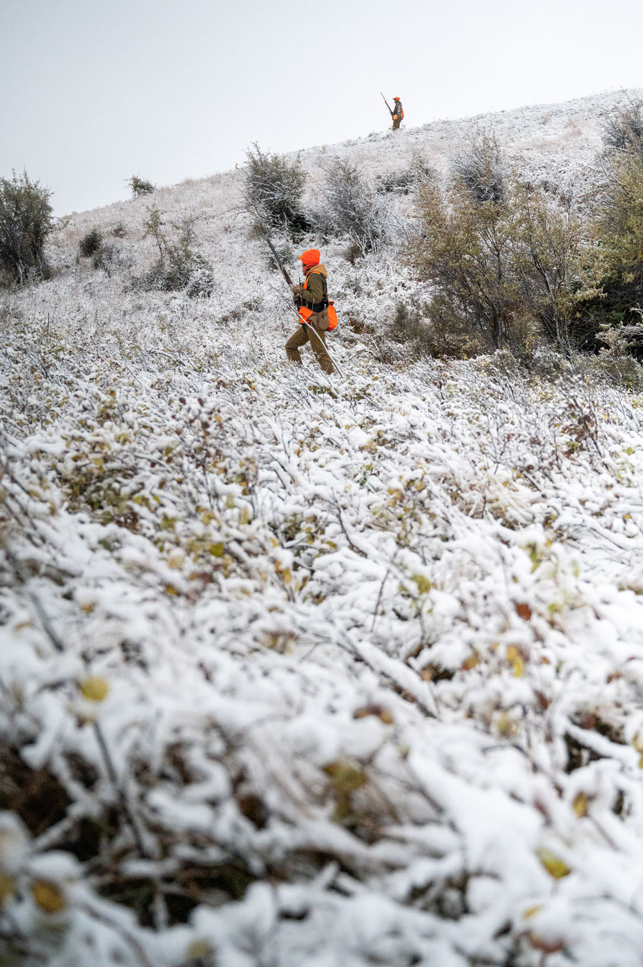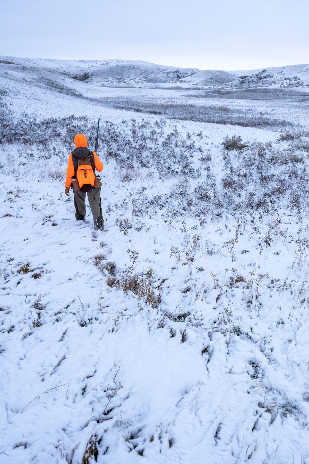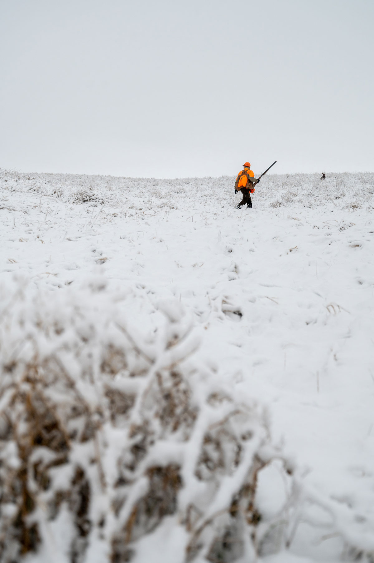 A slow pace works best, and helps keep the birds guessing. Winter roosters circle, sneak and skulk around you and your dog. Slowing down gives the dog more chance to work, and makes roosters fidgety; maybe fidgety enough to hunker in for a point or flush.