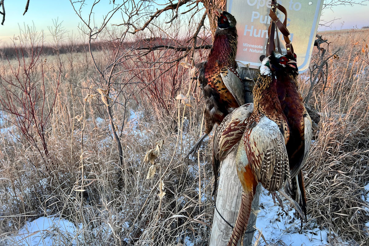 Take a midday break so you can hunt the last two hours of daylight, right to sunset. Pheasants move now, laying down scent as they head out to feed and then work back toward nighttime roosting cover.